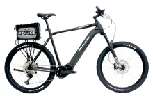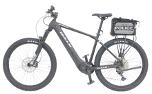 - Police-Optimized Rack: Integrated Topeak rack system supports a custom Topeak police bag with Velcro side panels displaying "POLICE" markings.